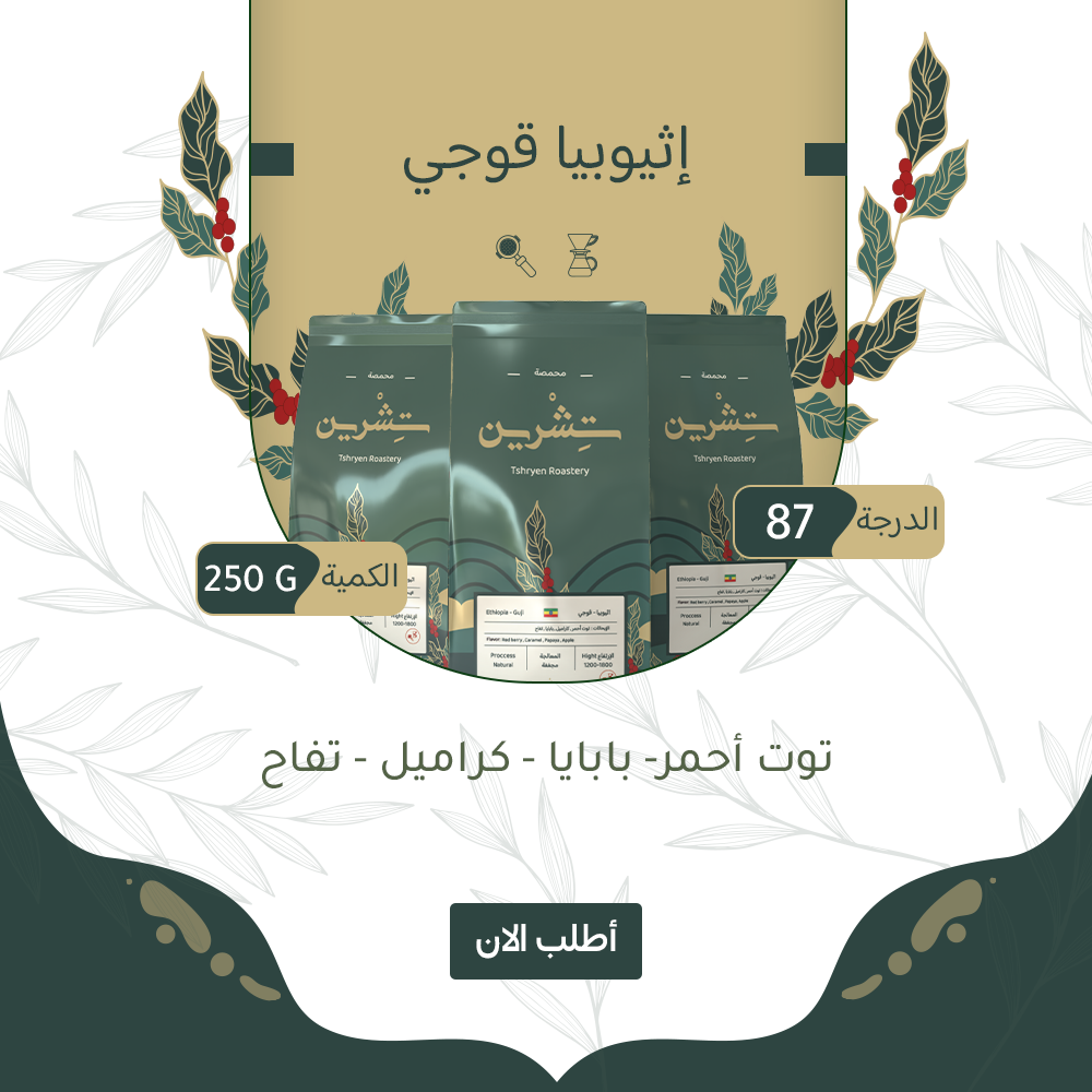 ابدأ رحلة الاكتشاف مع القهوة الإثيوبية قوجي الطبيعية. اطلب حقيبتك اليوم وتذوق النكهات الفريدة التي تحدد جوهر تراث القهوة الإثيوبية الغني.